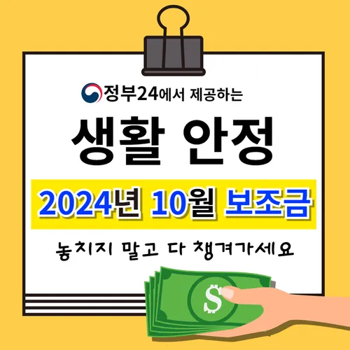 정부24 - 생활 안정 지원금 38개(놓치면 나만 손해!) - 2024년 10월